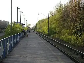 Станция интересна тем, что с 1939 г. по 1965 г. рядом с этой платформой находилась конечная станция детской железной дороги «Счастливая». Другая конечная станция этой дороги, «Родина», находится в парке им. 1 Мая. Таким образом, детская железная дорога имела большую протяжённость и выполняла роль городского транспорта, фактически дублируя перегруженные трамвайные маршруты. В настоящее время в здании этой станции находится Дворец Бракосочетаний[2].