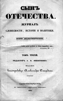 - ↑ Сын Отечества // Энциклопедический словарь — СПб.: Брокгауз — Ефрон, 1901. — Т. XXXII. — С. 208.