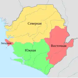 Сьерра-Леоне делится на 3 провинции и Западную область (район Столицы), которые делятся на 14 округов (districts). Также параллельно существует традиционное деление страны на вождества.