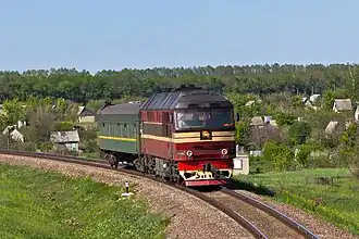 ![]() ТЭП70-0293 ![]() ТЭП70БС-107, эксплуатируемый БЧ, с пассажирским поездом на станции Минск-Пассажирский | |