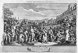 Казни в Тайберне были как в Средневековье, так и в Новое время излюбленным развлечением, привлекавшим внимание множества лондонцев. Жители Тайберна охотно пользовались этим в коммерческих целях, сооружая перед казнями деревянные трибуны и продавая на них места. Впрочем, такие «услуги» не всегда были безопасны для зрителей. Известны случаи, когда при большом напоре жаждущих увидеть зрелище самодельные трибуны разваливались, погребая под собой сотни зевак. Однако подобные происшествия никак не уменьшали числа желающих полюбоваться «весёлым зрелищем». Посещение места казни даже поощрялось из моральных и нравоучительных соображений. Так, день экзекуции в Тайберне для лондонских цеховых и мастеровых учеников был нерабочим. Подобную практику знаменитый английский художник Уильям Хогарт высмеял сатирической гравюрой Казнь ленивого школяра в Тайберне (1747).