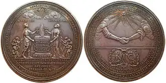 - Талерные свадебные медали (нем. Hochzeitsmedaille)[1], выпущенные непосредственно к свадьбе либо к свадебному юбилею. Известны талерные свадебные медали выпущенные не только по случаю свадьбы, но в ознаменование, в том числе, золотой свадьбы частных лиц (50 лет состояния в браке);