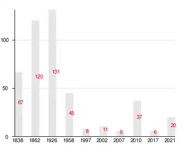 | 1838 | 1862[20] | 1997 | 2007[21] | 2010[22] | 2017[1] |