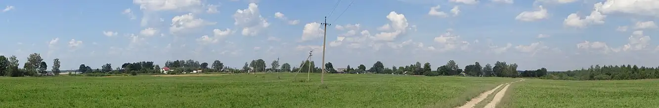 В начале деревни, в восточной части, расположено болото Каменное. На юге от деревни поле Калюга, на северо-западе урочище Лядцо, на западе паша У Товарских, на севере поле Пагнои, на северо-востоке паша Гать[3].