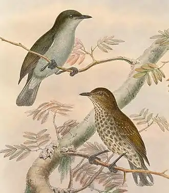 2. Gill F., Donsker D. & Rasmussen P. (Eds.): Australasian babblers, logrunners, satinbirds, berrypeckers, wattlebirds, whipbirds, jewel-babblers, quail-thrushes (англ.). IOC World Bird List (v14.2) (14 августа 2024). doi:10.14344/IOC.ML.14.2. Дата обращения: 14 января 2025.