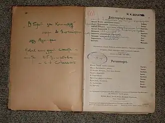 ![]() Первая афиша оперы (стиль модерн, художник А. Гогенштейн) | |