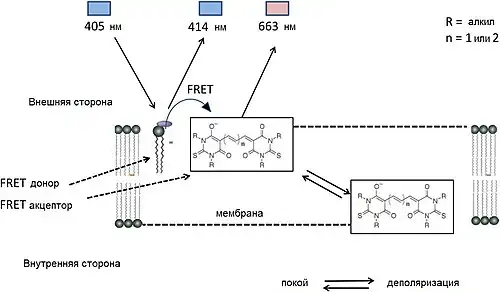 - ↑ Tsien R.Y., Gonzalez J. E. Improved indicators of cell membrane potential that use fluorescence resonance energy transfer // Chem. Biol., 1997, v. 4, p. 269—277.