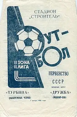- ↑ Программка к матчу «Крылья Советов» Куйбышев — «Турбина» Набережные Челны, 8 сентября 1981. Дата обращения: 7 февраля 2018. Архивировано 9 апреля 2016 года.