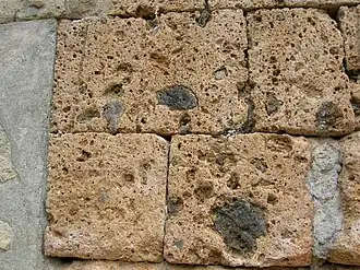 - Вследствие того, что в Италии распространено использование известкового туфа, стены Колизея были воздвигнуты из этого камня, который добывали в соседнем городе Тиволи. Также травертин использовался при постройке Собора святого Петра в Ватикане.