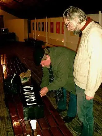 ![]() Владимир Тучков выступает на "Ковальских чтениях". Виктор Коваль в глубине кадра. Москва, 26.01.2007. | |