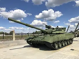 Танк с единой газотурбинной силовой установкой[5]. Первый в мире основной танк со встроенной противоснарядной динамической защитой. Принятый на вооружение в 1976 году армии СССР, затем России. Первые серийные образцы, разработанные СКБ-2 на базе Т-64А, выпускались на Кировском заводе в Ленинграде. Танк Т-80У выпускался на заводе «Омсктрансмаш» в Омске, а танк Т-80УД с дизельным двигателем — на ХЗТМ в Харькове.