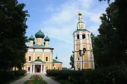 Угличский кремль — историко-архитектурный комплекс в историческом центре города Углича. Расположен на высоком правом берегу реки Волги, между впадающими в неё речкой Шелковкой и Каменным ручьем, которые обеспечивали естественную защищенность крепости, усиленную рвом, прокопанным от Шелковки до Каменного ручья. Некогда кремль был укреплен валами и деревянными стенами, которые неоднократно разрушались. Последний раз стены, башни и мосты были восстановлены в 1660—1662 годах. Через сто лет их разобрали из-за ветхости и ненужности. В настоящее время о былых укреплениях кремля напоминают только остатки рва. От прежних времен сохранился ансамбль построек, включающий княжеские палаты, церковь Димитрия-царевича, Спасо-Преображенский собор, колокольню и здание городской думы.