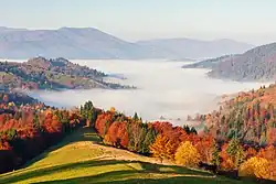 Рельеф большей части территории имеет равнинный характер: низменности занимают 70 %, а возвышенности и горы — 25 % и 5 % соответственно[58]. Горы находятся на западе (Украинские Карпаты, высшая точка — гора Говерла, 2061 м над уровнем моря) и юге (Крымские горы, высшая точка — гора Роман-Кош, 1545 м над уровнем моря).