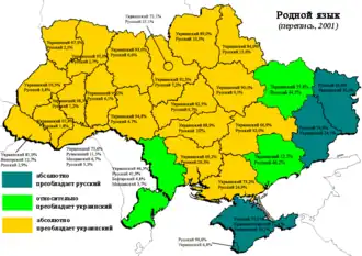 Страна подразделяется на 27 административно-территориальных единиц, 24 из которых являются областями, 1 — автономная республика (Крым) и 2 города (Киев, Севастополь[f]) со специальным статусом. Граничит с Беларусью на севере, Польшей, Словакией и Венгрией — на западе, Румынией и Молдовой[h] — на юго-западе, Россией — на востоке и северо-востоке. На юге и юго-востоке омывается Чёрным и Азовским морями; имеет морские границы с Румынией в Чёрном море и с Россией — в Чёрном и Азовском морях.