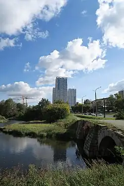 Уктусский мост — народное название, официально объект числится как Мост через реку Патрушиху. Строительство моста началось осенью 1856 года, когда была спущена вода из заводского пруда Уктусского завода, на месте бывшего деревянного моста, соединяющего Уктус с центром города Екатеринбург по Челябинского тракту. Чертёж и смету подготовил екатеринбургский архитектор Андрей Спиринг, спроектировавший в 1845 году каменную набережную Городского пруда со стороны Дома главного горного начальника (ныне Областная больница № 2). Мост был построен 28 июня 1857 года[2].