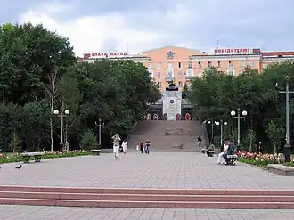 Памятник Ленину на главной площади города — площади Советов — в виде его головы. Монумент весом в 42 тонны и высотой 14 м начали возводить в 1970 году в честь столетия со дня рождения Ленина. Были разработаны десятки проектов, а победивший вариант признали лучшим не только в СССР, но и на всемирной выставке в Монреале[98].