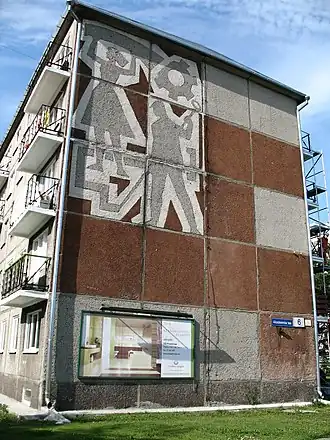 Боковые стены построенных по всесоюзной типовой серии 1-464 5-этажных жилых домов №№ 4, 6, 14 и 22 в 2009 году[9][10] было предложено взять под охрану государства как памятники культуры: их украшали панно, созданные в 1964 году известными эстонскими художниками (Оскар Раунам, Валли Лембер-Богаткина, Маргарета Фукс и Энн Пыльдрооc), при этом, однако, стена дома номер 14 к тому времени уже была утеплена, и панно «Играющие дети» закрашено[11]. Предложение не нашло отклика у властей, и к 2020 году в результате работ по утеплению фасадов в серый цвет было закрашено второе панно («Голубь и солнце»). Та же судьба может постичь и два оставшихся панно: «Гимнастка с обручем» (дом 6) и «Колхозница и рабочий» (дом 22).