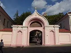 За зданием Филармонии обращает на себя внимание ворота базилианского монастыря — выдающееся произведение архитектуры позднего барокко (автор Иоганн Кристоф Глаубиц; 1761). Это первые ворота анфилады массивных барочных ворот, ведущих к храму и монастырским зданиям. На стене ворот установлена мемориальная таблица в память Игнатия Домейко, пребывавшего в заключении во время следствия по делу филоматов (1823—1824; таблица установлена в 2002 году).