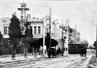 С 31 июля 1914 года по территории улицы проходило трамвайное движение. Первая линия трамвая следовала по маршруту до железнодорожного вокзала[7]. Трамвайное ветка была полностью снята с улицы в 1951 году[8].