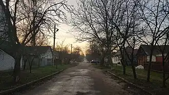 Улица пролегает в восточном направлении — к реке Стрижень — параллельно улицам Героев Чернобыля и Елены Билевич. Парная и непарная стороны улицы заняты усадебной застройкой.