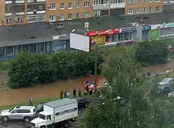 - ↑ Улица Челюскинцев ушла под воду Архивная копия от 24 декабря 2014 на Wayback Machine.