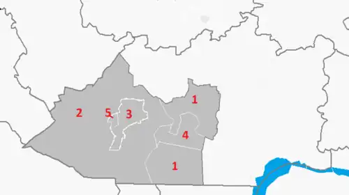Область состоит из 2 районов и 3 городов областного подчинения (городские администрации):