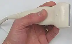 Медицинские ультразвуковые преобразователи (зонды) бывают самых разных форм и размеров, которые можно использовать для получения изображений поперечного сечения различных частей тела. Датчик можно использовать при контакте с кожей, как при ультразвуковой визуализации плода, или вводить в отверстие тела, например, в прямую кишку или влагалище . Клиницисты, выполняющие процедуры под ультразвуковым контролем, часто используют систему позиционирования зонда для удержания ультразвукового преобразователя[9].