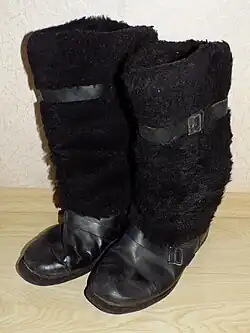 Традиционно изготавливаются из оленьей, овечьей или собачьей шкуры. Надеваются, как правило, в холодную погоду и в массовом порядке используются в условиях Крайнего Севера, поскольку шерсть обладает хорошими изоляционными качествами[3]. В настоящее время вошли в моду угги — короткие сапоги из овечьей шкуры со стриженым мехом, окрашенные в разнообразные цвета.
