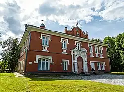 Главный дом усадьбы был выполнен в традициях английского романтизма XVIII века. Здание имеет асимметричный план, сильно вытянутый по оси «восток — запад». В доме было электричество, водопровод и система отопления с помощью одной большой печи, от которой через дымоходы тепло расходилось по всем комнатам. Во дворце площадью 3000 квадратных метров было около 150 залов. Этажи соединяли дубовая, базальтовая и мраморная лестницы.