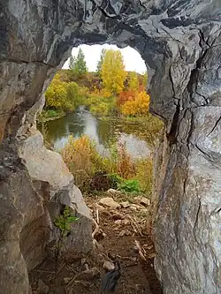 Река Миасс примерно в 40 километрах от своего истока за миллионы лет пробила путь в известняках, образовав каньон. Правый берег отвесными скалами обрывается прямиком в реку. Высота скал достигает 15 метров, а в длину они тянутся примерно на 1 километр. Возраст этих известняков — около 300 миллионов лет. В скалах встречаются небольшие гроты и пещерки.