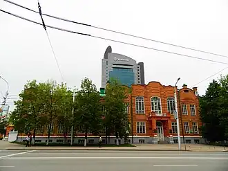 6 сентября 1909 г. Уфимская торговая школа была торжественно открыта. Вначале она не располагала своими помещениями и два года арендовала дом на Александровской улице, пока строилось здание на Центральной улице. Постройка обошлась в 90 тысяч рублей, из которых казна выделила 50 тысяч рублей, остальные средства были получены от Общество взаимного кредита.