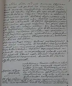 Оный адмирал Ушаков… и знаменитый благотворитель Санаксарской обители по прибытии своём из Санкт-Петербурга около восьми лет вёл жизнь уединённую в собственном своём доме, в своей деревне Алексеевке, расстояние от монастыря через лес версты три, который по воскресным и праздничным дням приезжал для богомоления в монастырь к служителям Божьим во всякое время, а в Великий пост живал в монастыре в келье для своего посещения… по целой седьмице и всякую продолжительную службу с братией в церкви выстаивал неукоснительно, слушая благоговейно. В послушаниях же в монастырских ни в каких не обращался, но по временам жертвовал от усердия своего значительным благотворением, тем же бедным и нищим творил всегдашние милостивые подаяния в всепомощи. В честь и память благодетельного имени своего сделал в обитель в Соборную церковь дорогие сосуды, важное Евангелие и дорогой парчи одежды на престол и на жертвенник. Препровождал остатки дней своих крайне воздержанно и окончил жизнь свою, как следует истинному христианину и верному сыну Святой Церкви.