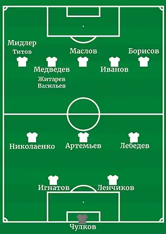 | «Динамо» Москва: Чулков - Ленчиков, Игнатов - Лебедев, И.Артемьев |