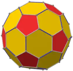 Многогранник не вполне правильно называется усечённым ромботриаконтаэдром. Правильнее было бы называть пятиусечённым ромботриаконтаэдром, поскольку усекаются только вершины порядка 5.