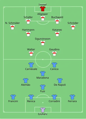 В первом матче в Италии счёт открыл игрок «Штутгарта» Маурицио Гаудино, но во втором тайме у «Наполи» забили Диего Марадона (с пенальти) и Карека.