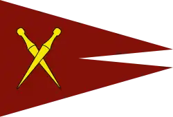 Флаг состоит из зелёного поля заряженного двенадцатью золотыми звёздами, девять из которых образуют дугу, напоминающую лук, и три горизонтальные, также заряженные тремя скрещенными стрелами в центре[6].