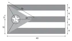 Флаг представляет собой прямоугольное полотнище с соотношением сторон 1:2, разделённое на пять горизонтальных чередующихся сине-белых полос. У древка расположен равносторонний треугольник красного цвета, в центре которого изображена белая звезда.