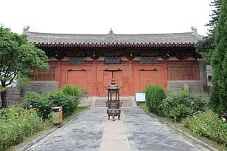 На северной стороне храма находится зал Манджушри (кит. 文殊殿)[1]. Он был построен в 1137 году, во времена империи Цзинь, и имеет примерно тот же размер, что и восточный зал. Он построен на фундаменте высотой 83 см, имеет спереди три двери и одну центральную заднюю дверь. Внутри зала имеются только четыре опорных колонны. Для поддержки большой двускатной крыши используются диагональные балки[19]. На каждой из четырех стен имеются фрески с архатами, изображенными в 1429 году, во времена империи Мин[1][20].
