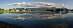 Водохранилище расположено недалеко от замка Нойшванштайн примерно в 30 км от Гармиш-Партенкирхена, у подножия Альп. Одно из чистейших озёр юга Германии, является пятым по размерам водоёмом в Баварии.