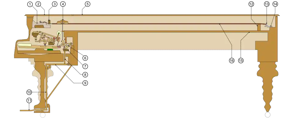 Дополнительным фактором, позволяющим определять год выпуска фортепиано, может быть номер механики.