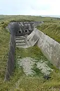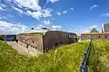 Кирпичный редут с двумя бастионами на южной стороне, окруженный сухим рвом.