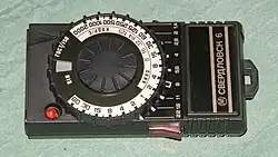 Фотоэкспонометр, экспоно́метр (лат. expono) — фотометрическое устройство для инструментального измерения яркости или освещённости снимаемых объектов при вычислении корректной фотографической экспозиции. Большинство экспонометров позволяют определить как экспозиционное число, так и оба экспозиционных параметра, а также контраст снимаемой сцены, немаловажный в профессиональной киносъёмке[1]. До конца 1950-х годов чаще всего использовалось название экспози́метр. Все экспонометры, предназначенные для измерения экспозиции в плёночной фотографии и кинематографе, пригодны для измерения экспозиции в цифровой фотографии, поскольку условные значения светочувствительности цифровых фотоаппаратов выбраны в соответствии с сенситометрическими параметрами желатиносеребряных светочувствительных материалов[2].