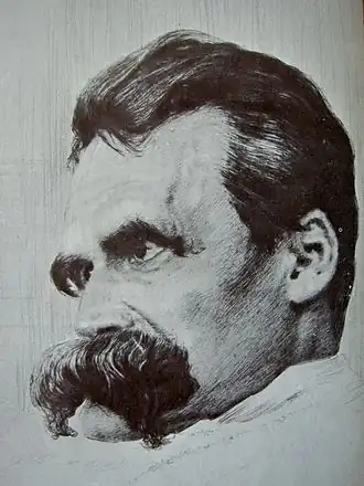 Фри́дрих Ви́льгельм Ни́цше (нем. Friedrich Wilhelm Nietzsche (немецкий: [ˈfʁiːdʁɪç ˈvɪlhɛlm ˈniːtʃə] (слушать)о файле или [ˈniːtsʃə])[8][9]; 15 октября 1844, Рёккен, Вайсенфельс, Саксония, Германский союз — 25 августа 1900, Веймар, земля Тюрингия, Германская империя) — немецкий философ, композитор, культурный критик и филолог, чьи работы оказали глубокое влияние на современную философию. Творческое наследие Ницше обрело популярность среди художников на рубеже XIX и XX веков, повлияв на развитие авангардного направления и символистов, русской философии Серебряного века, а также в послевоенные десятилетия XX века, оказав глубокое влияние на мыслителей XX и начала XXI веков по всей философии, особенно в школах континентальной философии, таких как экзистенциализм, постмодернизм и постструктурализм, а также на искусство, литературу, поэзию, политику и популярную культуру.