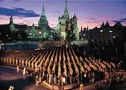 Krieg und Frieden («Война и мир») 1994: два настоящих танка разорвали слово «Война».[20]
