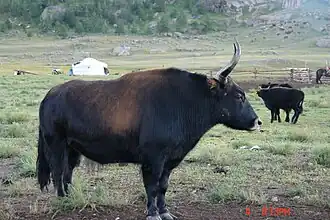- ↑ Takase Hisabumi, Kh. Tumennasan et al., «Fertility Investigation in F1 Hybrid and Backcross Progeny of Cattle (Bos taurus) and Yak (Bos gruniens) in Mongolia: II. Little variation in gene products studied in male sterile and fertile animals» Архивная копия от 15 февраля 2009 на Wayback Machine, in: Niigata journal of health and welfare Vol. 2, No. 1, pp. 42—52.