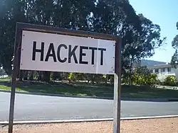 Район назван в часть сэра Джона Уинтропа Хакетта (1846—1916), редактора газеты и пропагандиста объединения Австралии. Улицы района названы в честь учёных.