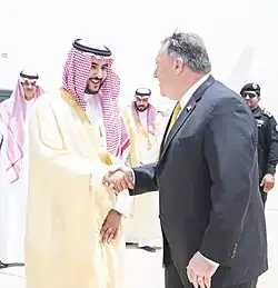 - ↑ Mohammed bin Salman welcomed at White House by Donald Trump (англ.). Дата обращения: 29 мая 2018. Архивировано 28 мая 2018 года.