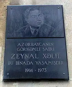 Зейнал Халил (азерб. Zeynal Xəlil, настоящее имя — Зейнал Рза оглы Халилов; 23 марта 1914, Елизаветполь — 11 августа 1973, Баку) — советский азербайджанский поэт и драматург, заслуженный деятель искусств Азербайджанской ССР (1964). Кавалер ордена «Знак Почёта».