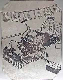 Перед закалкой меч покрывается смесью из глины и угольного порошка (могут содержаться и другие ингредиенты). На лезвие наносится более тонкий слой, чем на другие участки меча. Для закалки лезвие нагревается сильнее, чем задняя часть. При этом важно, чтобы, несмотря на разницу температур (например, 750—850 °C), меч в поперечном сечении и обратная сторона нагревались равномерно. Во время охлаждения в тёплой воде лезвие, нагретое сильнее остальных частей, остывает быстрее и получает более высокое содержание мартенсита, чем другие участки меча. Граница этой узкой зоны (хамон) хорошо заметна после закалки и полировки меча. Она представляет собой не линию, а довольно широкую зону (здесь перепутаны якиба («обожжённое лезвие») — собственно закалённая часть клинка, и хамон — узкая линия, отделяющая закалённую часть от незакалённой).