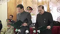 - ↑ Pakistan : le nouveau premier ministre Imran Khan a prêté serment (фр.). le Monde. Дата обращения: 18 августа 2018. Архивировано 18 августа 2018 года.
